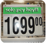 Porta precio con libreta y espacio para inserto, ideal para cabecera de góndola chica o para islas de promoción de productos